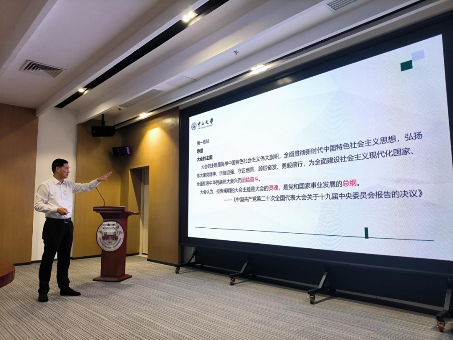中山大学-广州南方学院党建“组团式”帮扶小组成员漆小萍以“深刻把握开展主题教育的重大意义和目标要求”为主题作学校主题教育读书班首场专题辅导报告。他围绕深刻领会重大意义、准确把握目标要求、扎实做好工作安排三个部分深刻阐述了开展主题教育的重大意义和目标要求,并分享了中山大学学习贯彻习近平新时代中国特色社会主义思想主题教育的开展情况。