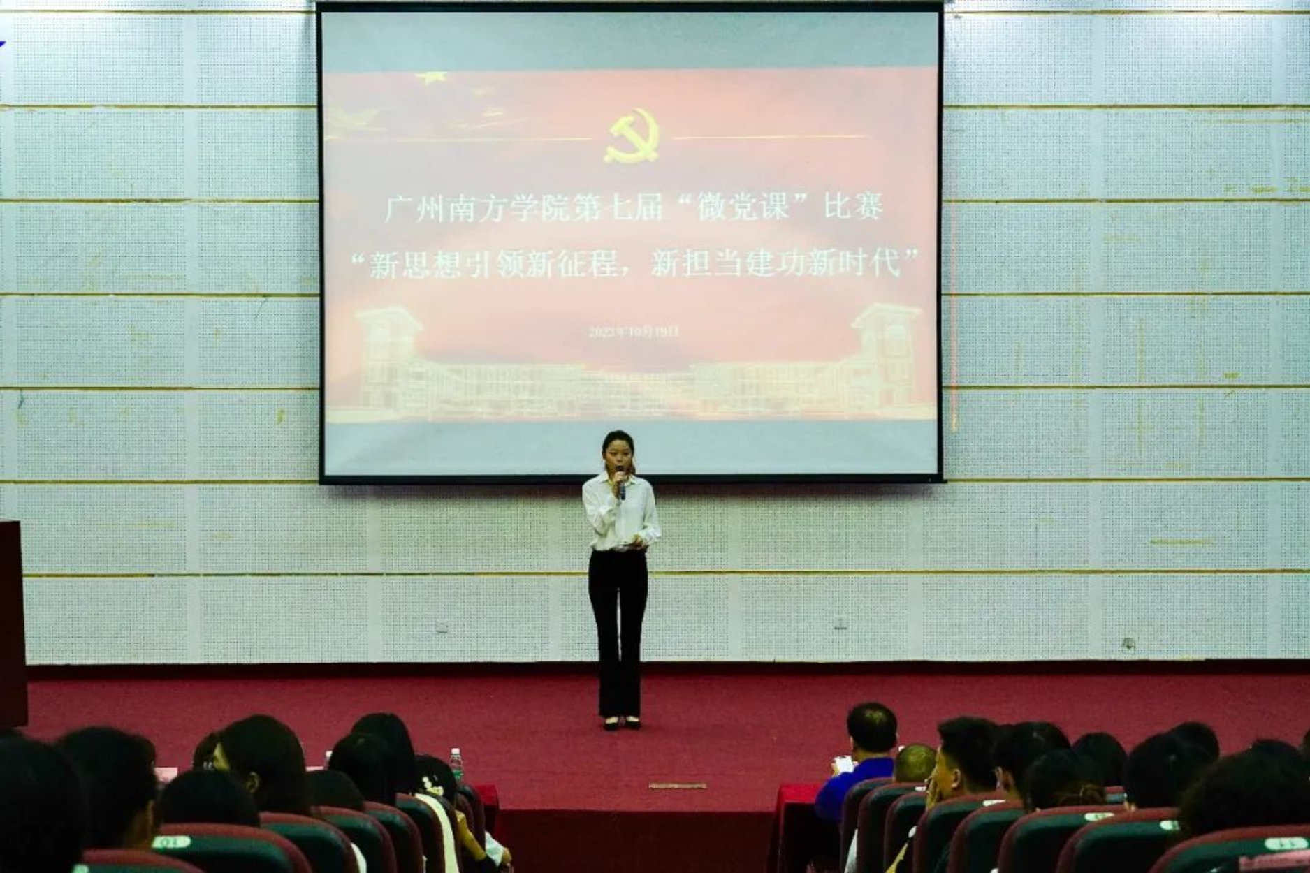 10月19日,广州南方学院第七届“新思想引领新征程,新担当建功新时代”主题微党课比赛在学术报告厅成功举办。学校党委书记李建超,党委副书记、副校长植秀聪,师生党员代表、相关职能部门负责人齐聚一堂,共赴这场“党课盛宴”。