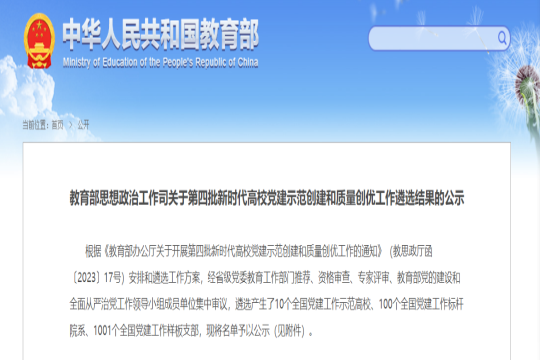 近日,教育部思想政治工作司发布《关于第四批新时代高校党建示范创建和质量创优工作遴选结果的公示》,我校商学院学生第二党支部、会计学院教工党支部入选“全国党建工作样板支部”培育建设单位。
