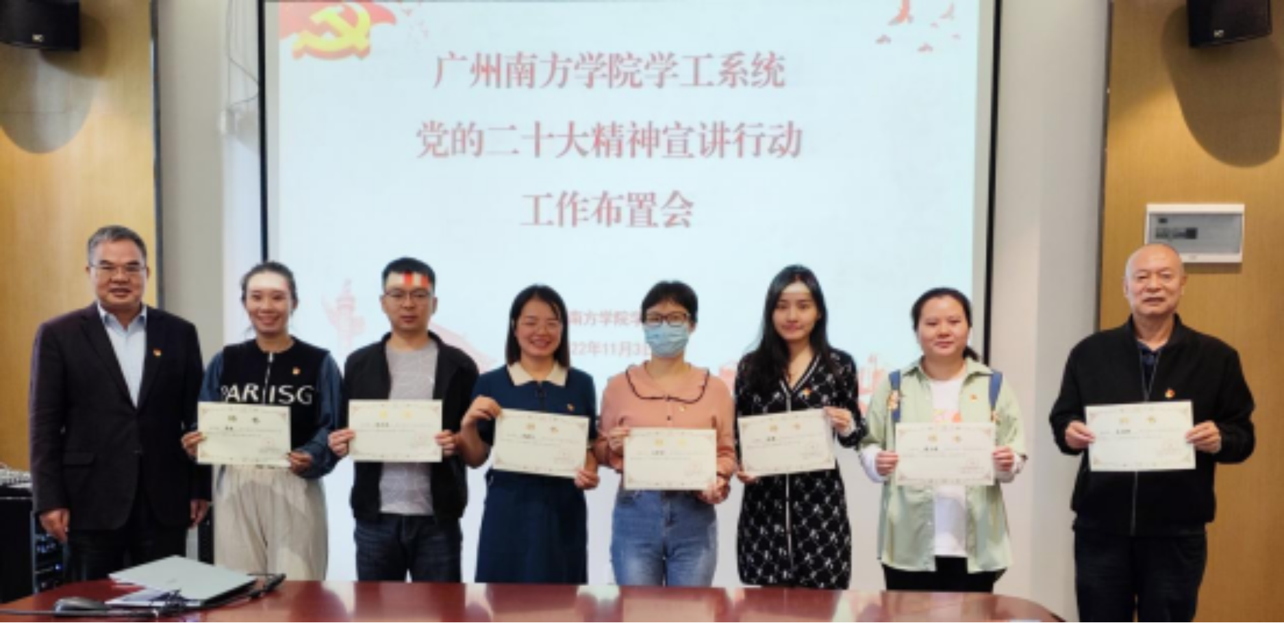 党委副书记、副校长植秀聪为七个宣讲队队长颁发聘书