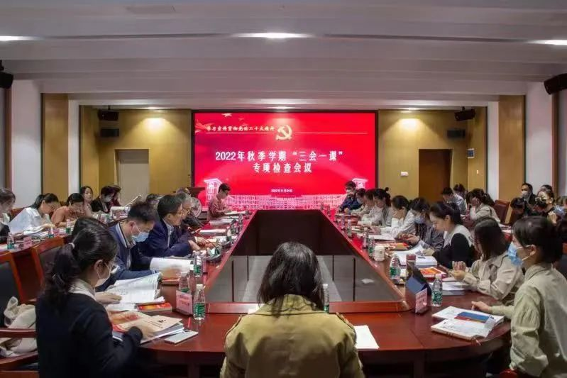 11月24日上午,我校学习宣传贯彻党的二十大精神暨2022年秋季学期“三会一课”专项议在综合楼第一会议室召开。本次专项检查采取主会场集体研讨、三个分会场分组交流研讨的方式进行,以发现问题、解决问题为主要原则,通过实地考察、查阅资料、听取汇报、交谈研讨等方式,重点围绕“三会一课”落实的次数、质量、程序、会议记录是否规范、活动形式是否多样等内容,采取看、问、查、教等形式进行集中“把脉问诊”。党委书记李建超,党委副书记、副校长植秀聪,副校长龚鸣,学校党委委员、各党总支副书记、各党支部书记以检查会及党委组织统战部全体成员参加会议。党委组织统战部部长宋得福主持会议。