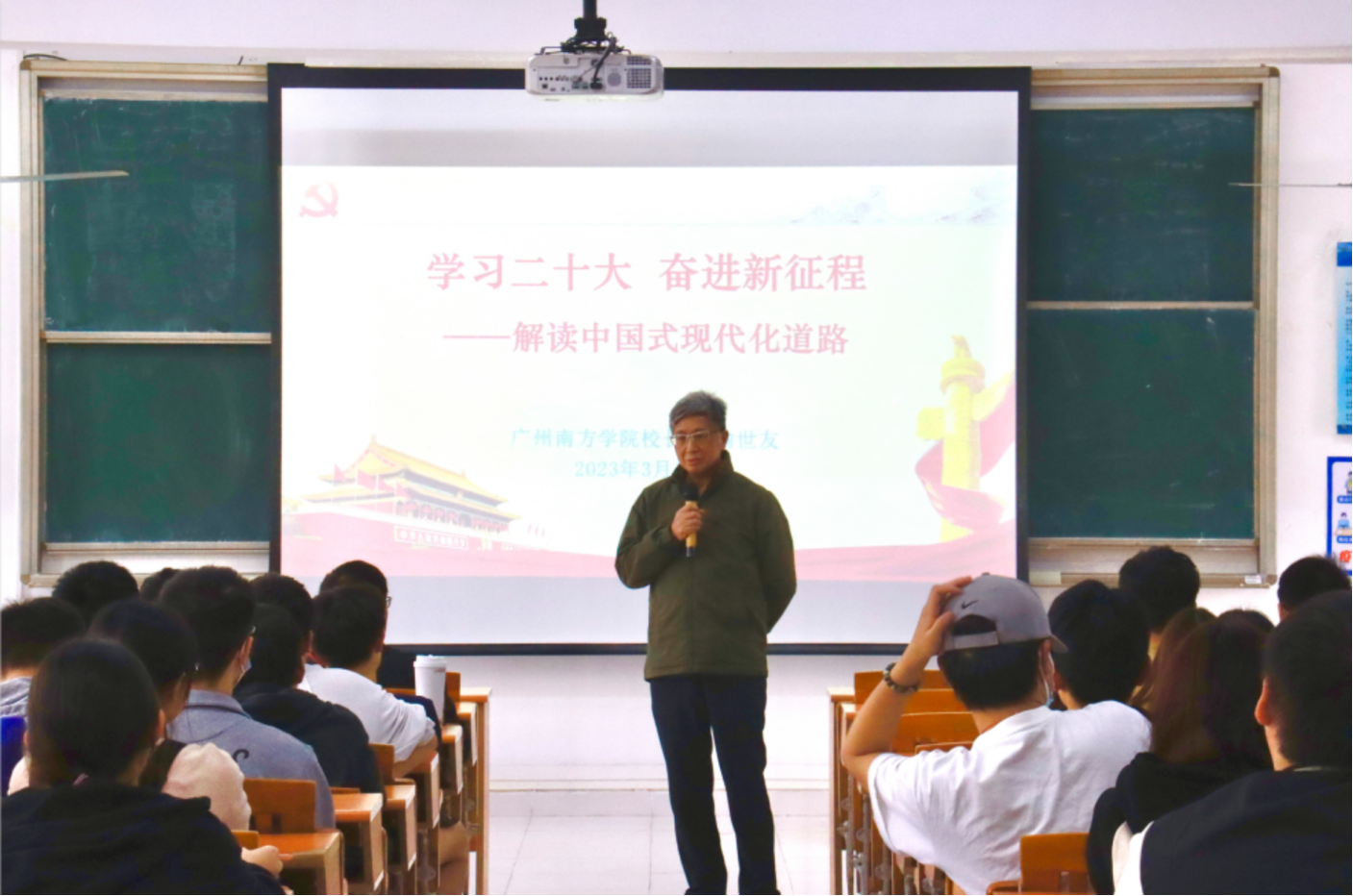 3月14日,我校党委书记李建超、校长喻世友走上讲堂,分别以“踔厉奋发新时代 勇毅前行正青春”、“学习二十大,奋进新征程——解读中国式现代化道路”为题,紧扣党的二十大报告中“中国式现代化”重要内容,向南院学子讲授本学期第一堂思想政治理论课。