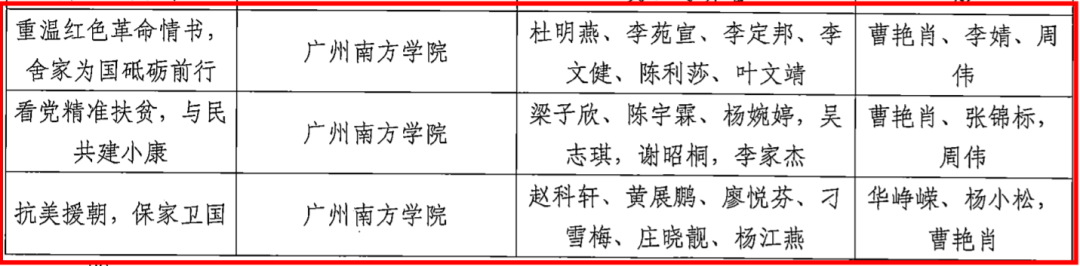 广州省教育厅”第五届全国高校大学生讲党史公开课展示活动“获奖名单