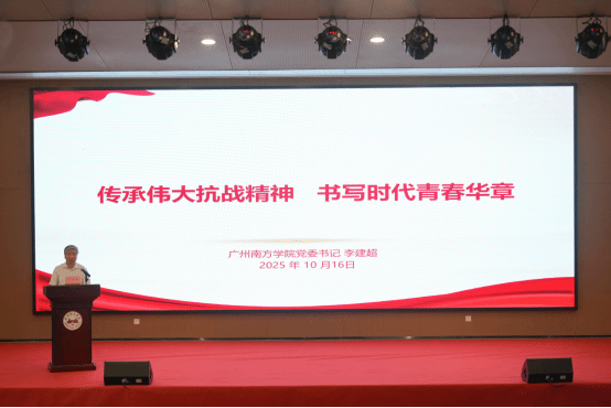 10月16日上午,学校党委书记李建超以“传承伟大抗战精神 书写时代青春华章”为题,在教研楼报告厅为电气与计算机工程学院、商学院、设计学院、会计学院2025级新生讲授了一堂兼具思想温度与情感深度的“思政第一课”。